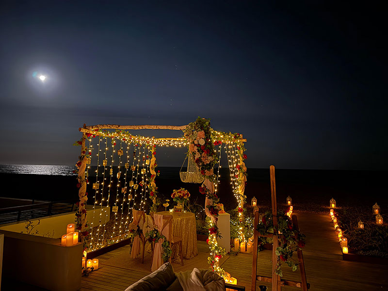 The luxury and exquisite details that make our events stand out, The One Romance team added a fairy-light gazebo on the terrace for the perfect touch setting worthy of the occasion, especially since this was a celebration of their engagement we had planned for them in Paris just a month earlier.
