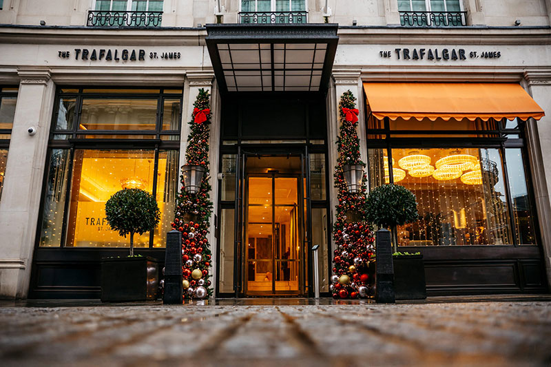 This trip was Joe and Ryan’s very first visit to the UK, and Ryan’s brief was wonderfully clear and heartfelt. He wanted something with a historic London view, completely private, simple and elegant, with the focus solely on the two of them and their love for one another. As they were staying at the hotel, the rooftop private dining room at St James Trafalgar felt like the most natural and meaningful choice. Elevated above the city, it offers breathtaking views across Trafalgar Square, with iconic landmarks such as Nelson’s Column and the National Gallery providing an unforgettable historic backdrop.